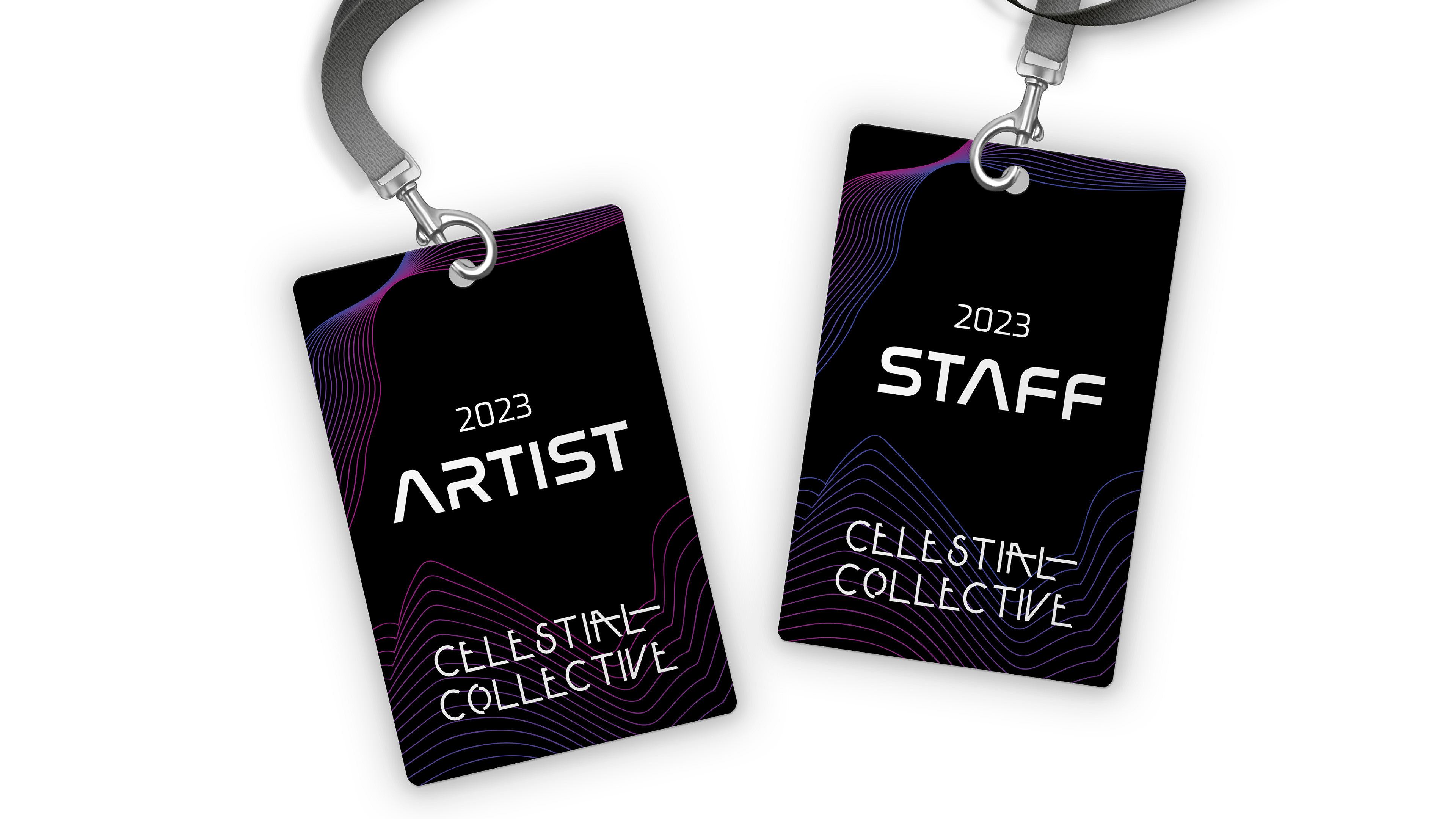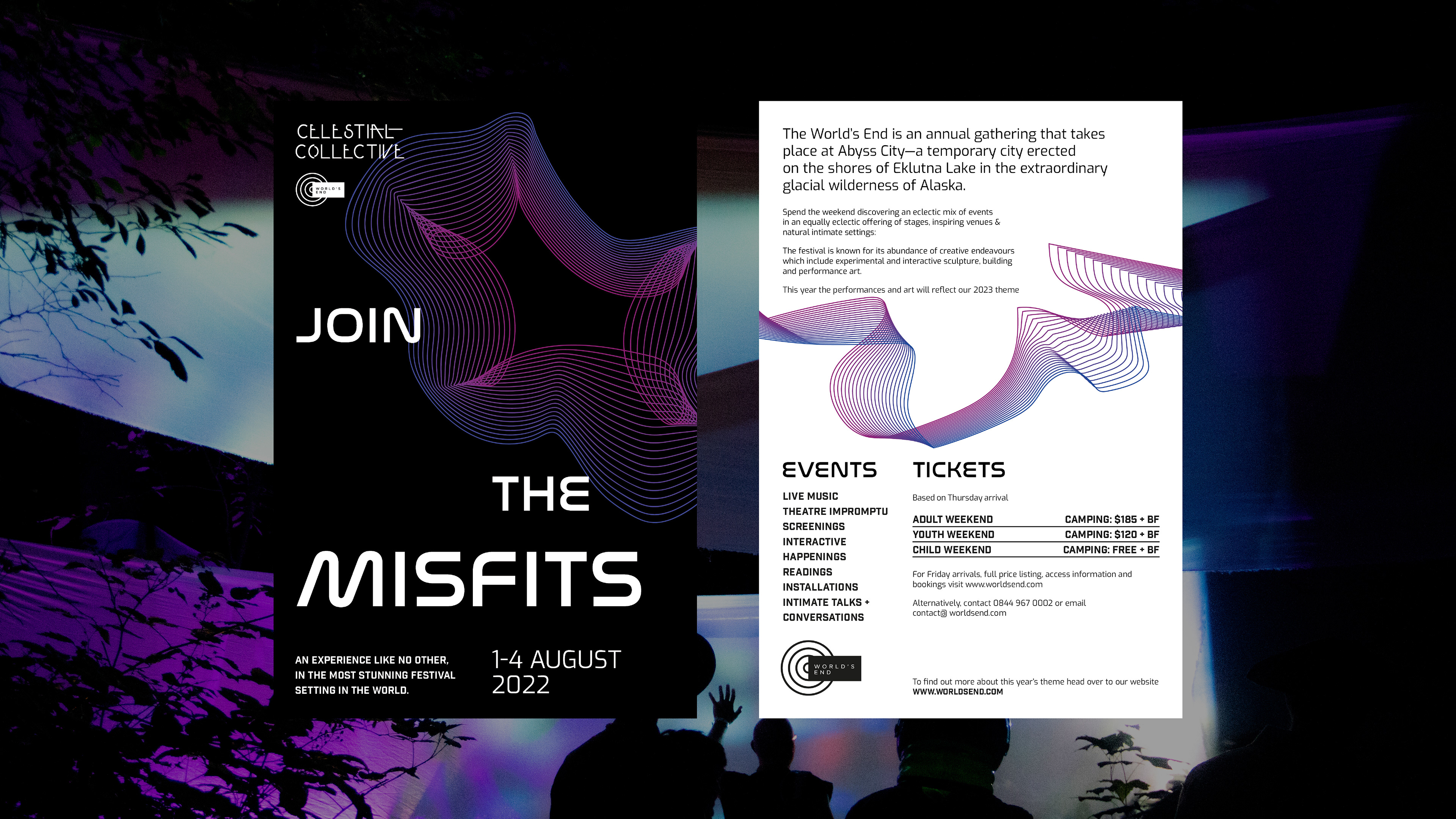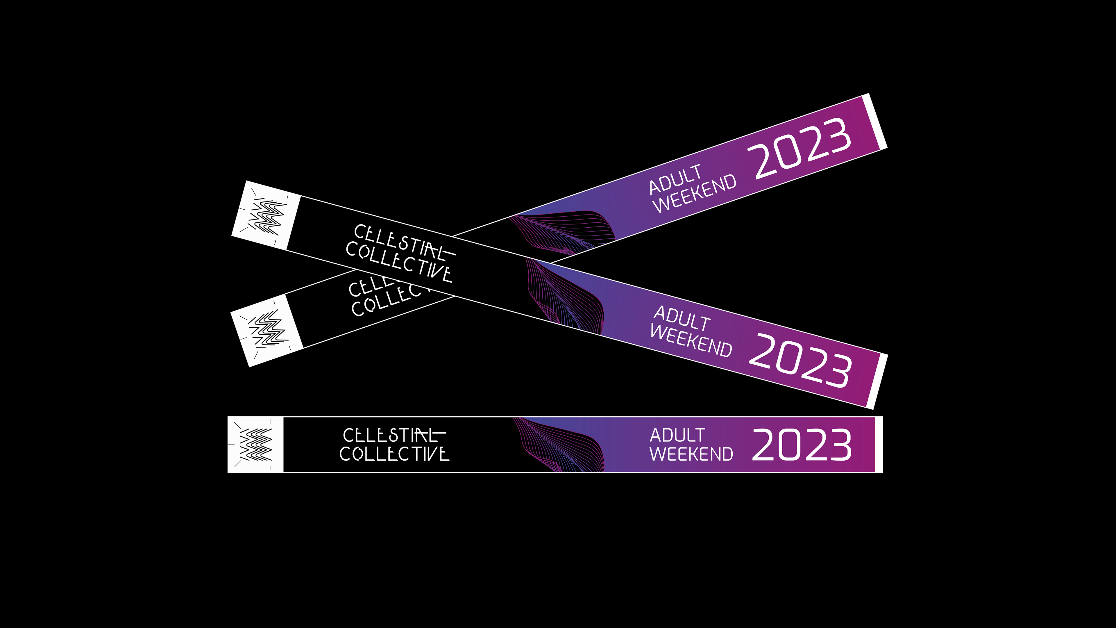 North American festivals tend to have very similar competing design, often more complicated than is needed. Celestial Collective features stripped back minimalist graphics with a modern and experimental type lock-up.