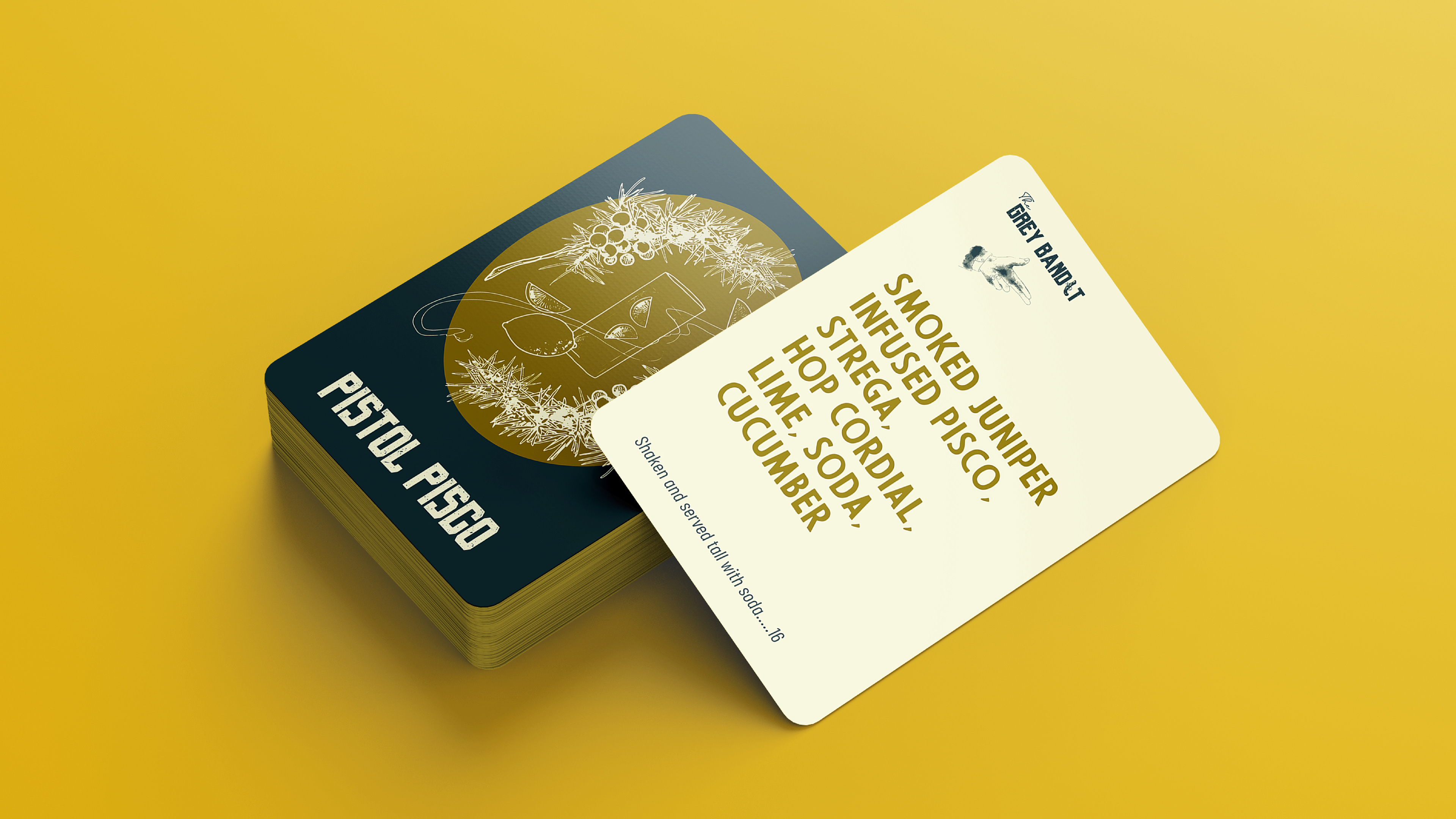 To keep with the old Western theme, the cocktail menu is displayed on playing cards for the customer to flick through, accompanied by hand-drawn illustrations.